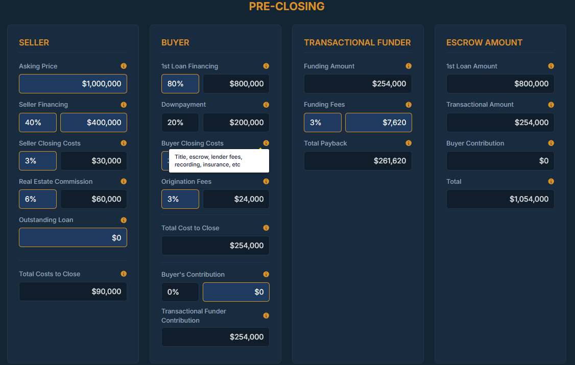 Calculate funding needs, fees, and buyer profits instantly without need for any spreadsheets
